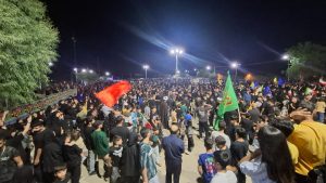 در پایان مراسم، گروههای سنجزن و دمامکوب، همراه با هیئتهای عزاداری، صحنههایی پرصلابت و جانسوز آفریدند. طنین حماسی دمامها و نوای یکپارچه «یا حسین» گویان مردم، در تاریکی شب، بر فراز تپه شهدا طنین انداخت و یاد شهیدان را جاودانه ساخت.