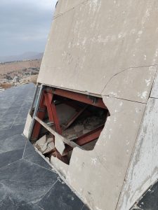 تخریب مقبره: دیواره های مقبره شکسته و جایگاه یادگارینویسیهای غیراخلاقی آلوده شدهاند.