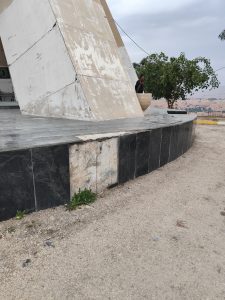 محیط پیرامونی: مسیرهای پر از چاله و ناهمواری که دسترسی را برای بازدیدکنندگان به ویژه سالمندان و جانبازان دشوار کرده است.